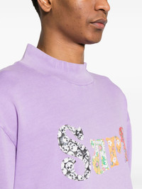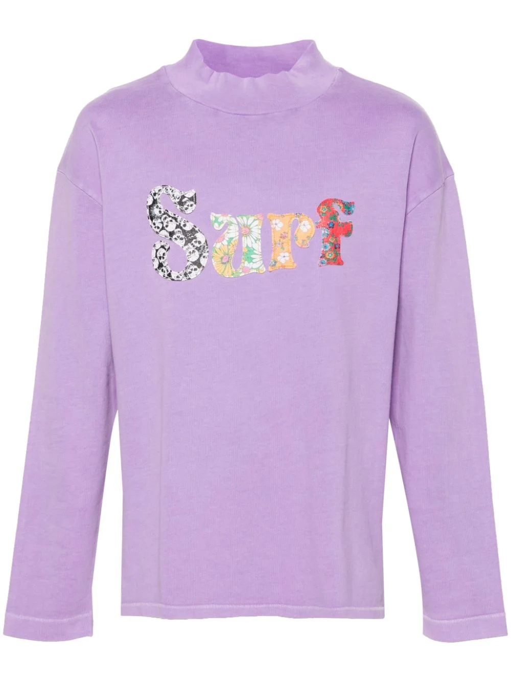 motif-embroidered cotton T-shirt Highlights - Violet purple - Cotton - Jersey texture - Ribbed trim - Embroidered motif - Mock neck - Drop shoulder - Long sleeves - Short side slits - Straight hem Imported Composition Cotton 100% SIZE & FIT Model measurements Height 6 ft 2 in(1.87 m) Bust/Chest 36.22 in(92 cm) Hips 37 in(94 cm) Waist 27.95 in(71 cm) Measurement CHEST 41.73 in(106 cm) SLEEVE LENGTH 23.62 in(60 cm) LENGTH 27.95 in(71 cm) Shoulder Width 22.44 in(57 cm) FittingInformation Designed for a relaxed fit, this piece allows for comfort and movement when worn Made from a midweight non-stretch fabric, this piece offers minimal elasticity when worn This piece fits true to size – take your usual size Washing instructions Machine Wash
