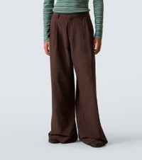 Inspired by California's laid-back lifestyle, ERL's casual designs come in a variety of mood-boosting colors and nostalgic patterns. These wide-leg pants feature a pleated silhouette and a lightweight texture with a soft cotton lining. Product Details - Material: 100% polyamide - Care instructions: dry clean - Made in Portugal - Designer color name: Brown - Item color: brown - Lining: 100% cotton - Closure: zipper fly, button and hook fastenings - Pockets: side slit pockets, back pockets - Belt loops - Item number: P01085201 Size & Fit - True to size - Non-stretchy fabric - Wide-leg - The model in the picture is 185cm-6'1" and wearing a size L