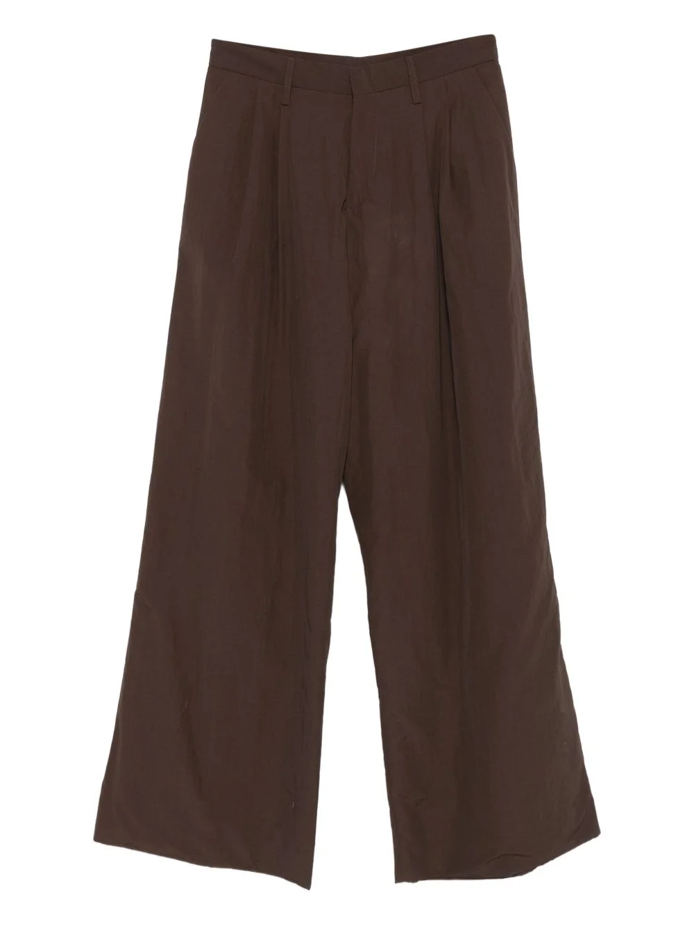 pleated wide-leg trousers Highlights - Brown - Front button and zip fastening - Wide leg - Pleated detailing Imported Composition Polyamide 100% SIZE & FIT Model measurements Height 6 ft 0 in(1.84 m) Bust/Chest 35.82 in(91 cm) Hips 37 in(94 cm) Waist 28.34 in(72 cm) Washing instructions Read Manufacturer Guidelines