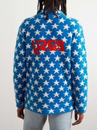 ERL delivers mood-boosting collections with vibrant colours, bold patterns and tongue-in-cheek slogans. Printed with the word 'easy' across the chest, this mock-neck sweater is made from soft cotton-blend fleece and features an allover star pattern inspired by classic Americana. Size & Fit - Model wears a size larger to achieve a looser fit - Mid-weight knit - Model is shown wearing a M - Model measures: chest 36"/ 92cm, height 6'1"/ 185cm Details & Care - Blue, red and white cotton-blend fleece - 80% cotton, 20% polyamide - Hand wash