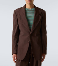 This ERL suit jacket is a refined essential for both formal looks and more laid-back styles. The garment is designed with a notched lapel and a double-button fastening at the front. Product Details - Material: 100% polyamide - Care instructions: dry clean - Made in Portugal - Designer color name: Brown - Item color: brown - Lining: 100% cotton - Closure: single-breasted (two buttons) - Notched lapel - Pockets: internal pockets - Vent: double - Item number: P01085220 Size & Fit - True to size - Shoulder pad inserts - Regular fit - Non-stretchy fabric - Falls below the hip - Height of model is 188cm-74" and wears a size L