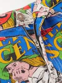When it comes to designing, ERL's founder draws on the laid-back vibe of his hometown, Los Angeles' Venice Beach. These shorts are cut for a slim fit from denim and printed with the label's vibrant comic book-inspired pattern. Small to size. See Size & Fit notes. Size & Fit - Fits small to size. Take one size larger than normal - Slim cut, mid-rise style - Mid-weight, non-stretchy fabric - Model is shown wearing a M - Model measures: waist size 30, height 6'2"/ 188cm Details & Care - Multicoloured denim - Button and zip fastening - 100% cotton - Machine wash - Made in Italy
