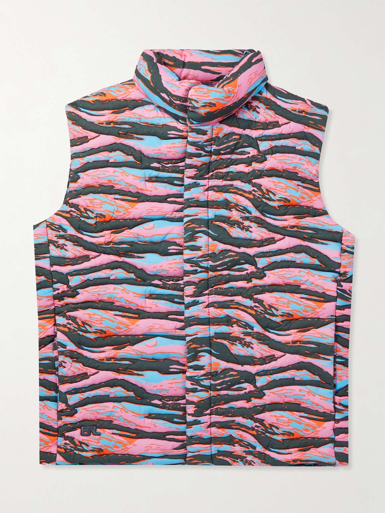 Inspired by the laid-back attitude of Venice Beach, ERL's collections are filled with vibrant colour and bold patterns. This gilet is made from tiger-striped cotton-jacquard that's quilted and padded with insulating down for lightweight warmth. The hallucinogenic palette is sure to attract compliments and good vibes. Small to size. See Size & Fit notes. Size & Fit - Fits small to size. Take one size larger than normal - Designed for a regular fit - Quilted, non-stretchy fabric - Model is shown wearing a M - Model measures: chest 36"/ 92cm, height 6'1"/ 185cm Details & Care - Multicoloured cotton-jacquard - Snap fastenings - 100% cotton; filling: 80% down, 20% feathers (Duck) - Specialist clean - This item has been imported