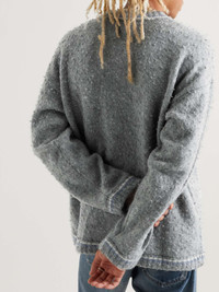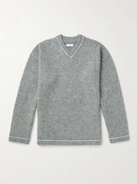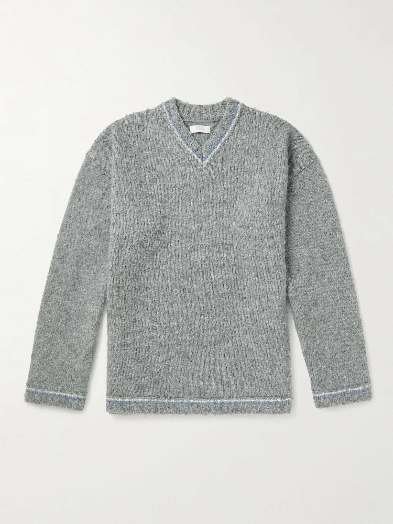 ERL's slouchy sweater evokes the free-spirited aesthetic of Venice Beach. It's knitted from wool-blend and washed for a tactile handle. Wear it with vintage-inspired denim. Size & Fit - Fits true to size - The model is wearing a size larger to achieve a looser fit - This sweater is designed for a slightly loose cut - Dropped shoulder seam - Mid-weight knit - Model wears a M - Model measures: chest 36"/ 92cm, height 6'0"/ 183cm Details & Care - Grey, white and blue wool-blend - 54% wool, 25% polyamide, 21% mohair - This item has been imported