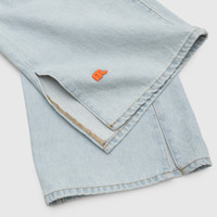 - ERL08P201 - Blue 1 - 100% Cotton - Front button and zipper closure - Five-pocket construction - Frayed detailing at the waist - Printed logo at the rear - Embroidered logo - Split seam detailing - Loose fit