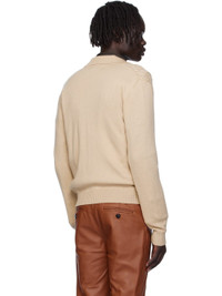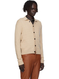 Beige Cable-Knit Polo Cardigan