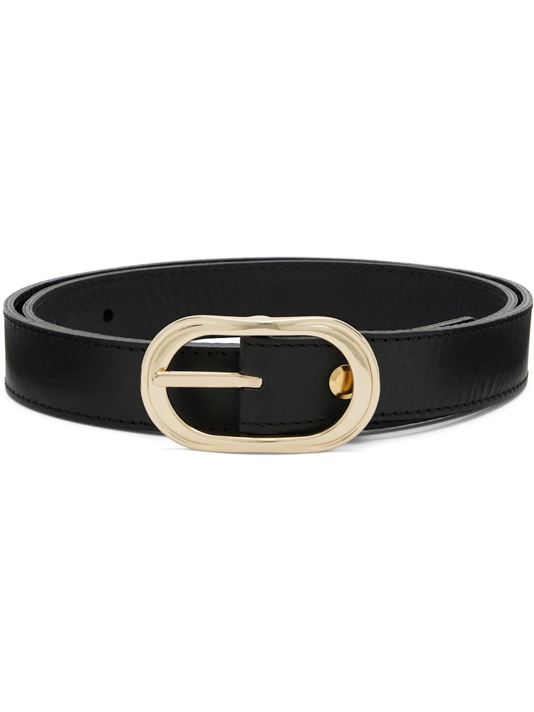 Buffed calfskin belt. · Pin-buckle fastening · Gold-tone hardware · W1" Supplier color: Black leather Calfskin. Made in Portugal 252600M131000