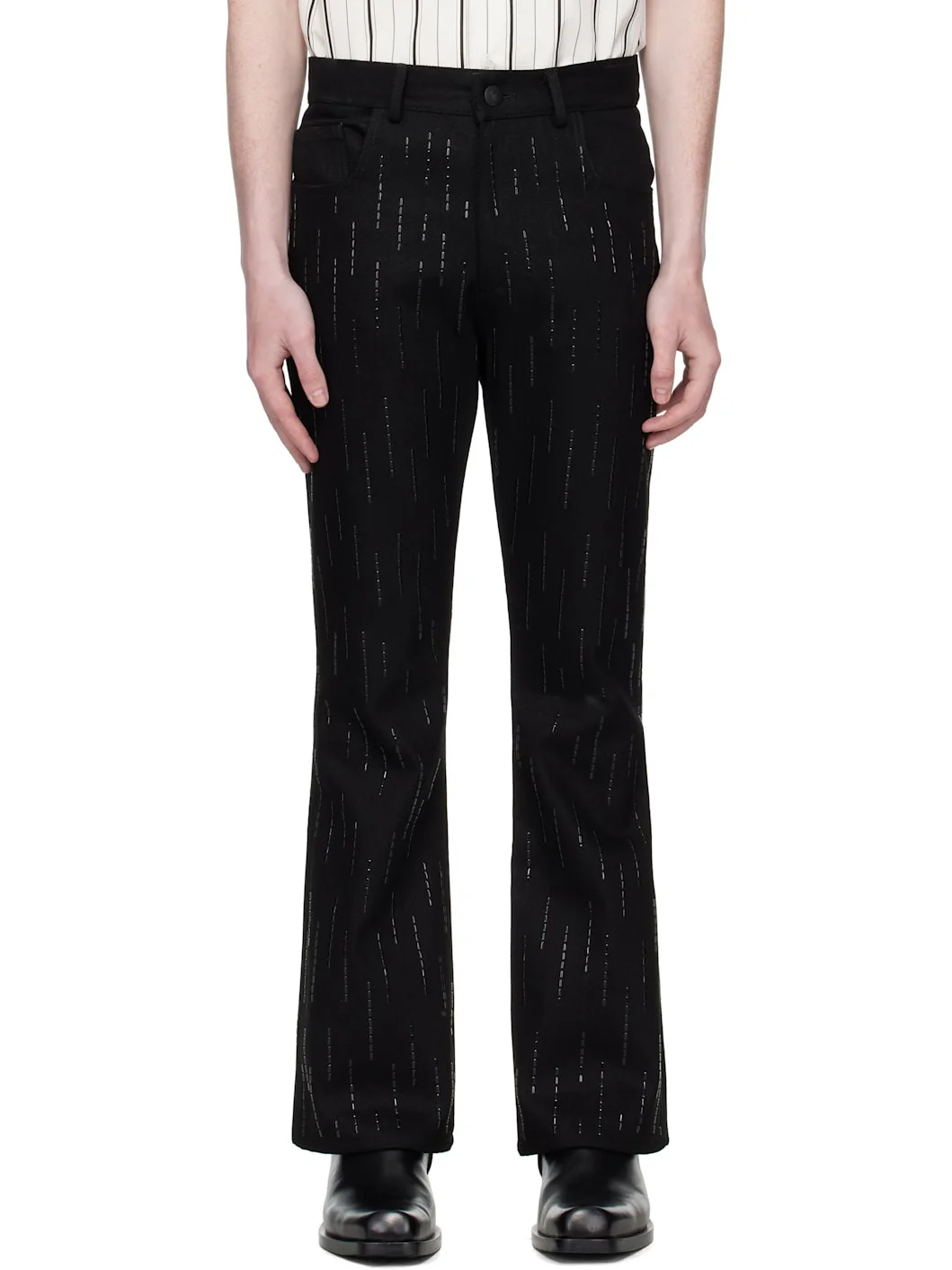 Organic cotton twill trousers. · Crystal appliques throughout · Belt loops · Five-pocket styling · Zip fly · Logo-engraved hardware Supplier color: Black with black crystals Body: 100% organic cotton. Trim: 100% cotton. Made in Portugal 252600M191014