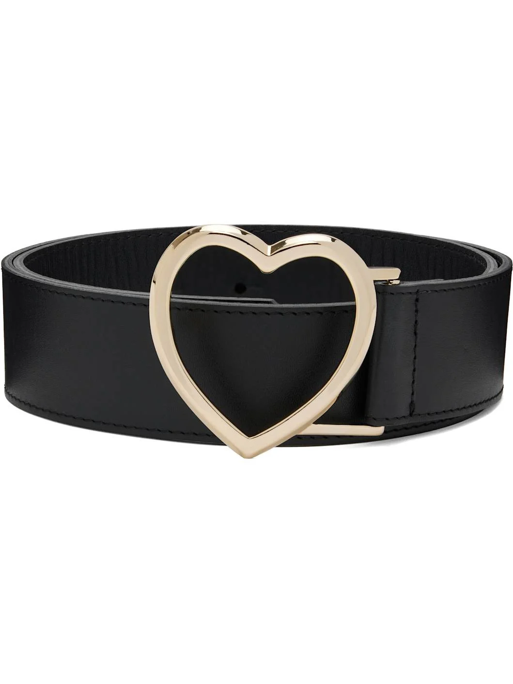 Buffed leather belt. · Gold-tone heart-shaped buckle · Post-stud fastening · W1.5" Supplier color: Black Leather. Made in Portugal 252600M131005