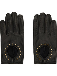 Grained lambskin gloves. · Perforations at fingers · Cutout with gold-tone studs at top · Press-stud fastening at cuffs · Suede interior Supplier color: Black w/ Gold studs Lambskin. Made in Portugal 252600M135010