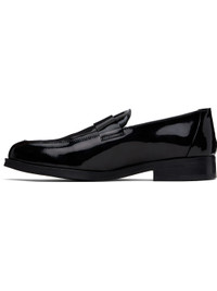 Patent calfskin loafers in black. · Moc toe · Strap at vamp · Buffed leather and suede lining · Stacked leather heel with rubber injection · Smooth leather sole Supplier color: Black patent leather Upper: calfskin. Sole: leather, rubber. Made in Portugal 251600M231001