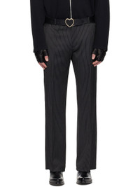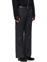Stretch virgin wool twill trousers. · Loose-fit, flared · Pinstripes throughout · Belt loops · Four-pocket styling · Zip fly · Creased legs Supplier color: Black Pin Stripe Body: 99% virgin wool, 1% polyurethane. Pocket lining: 100% cotton. Made in Portugal 261600M191016