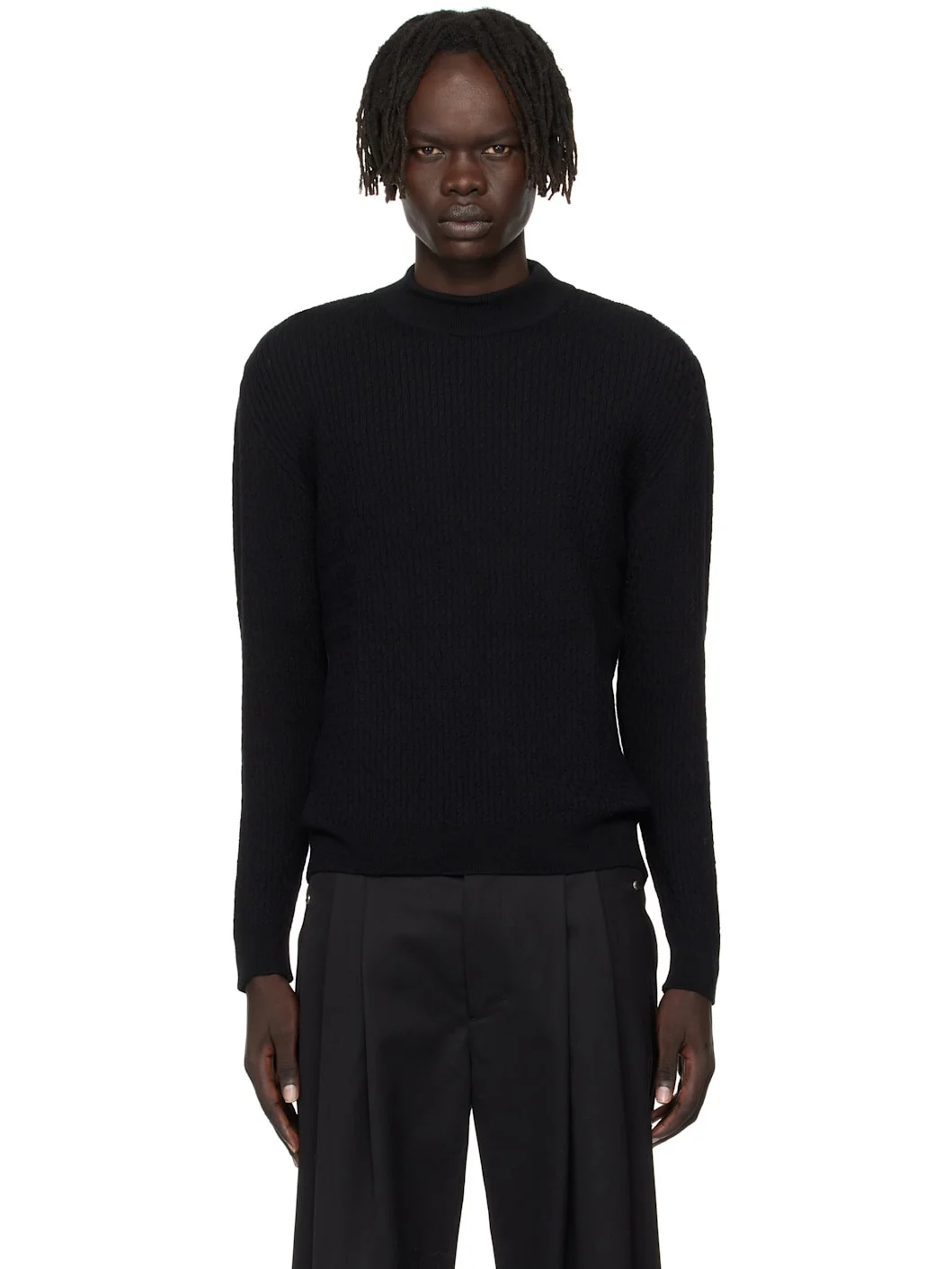 Black Mock Neck Cable-Knit Sweater
