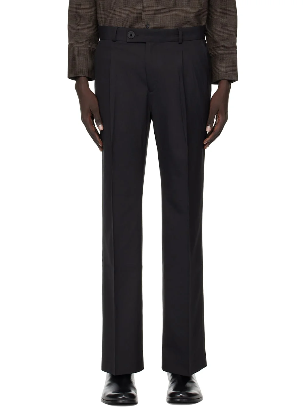 Plain-woven stretch virgin wool-blend trousers. · Straight-leg · Belt loops · Four-pocket styling · Zip fly · Pleats at front · Creased legs Supplier color: Black Body: 54% polyamide, 44% virgin wool, 2% elastane. Pocket lining: 100% cotton. Made in Portugal 252600M191011