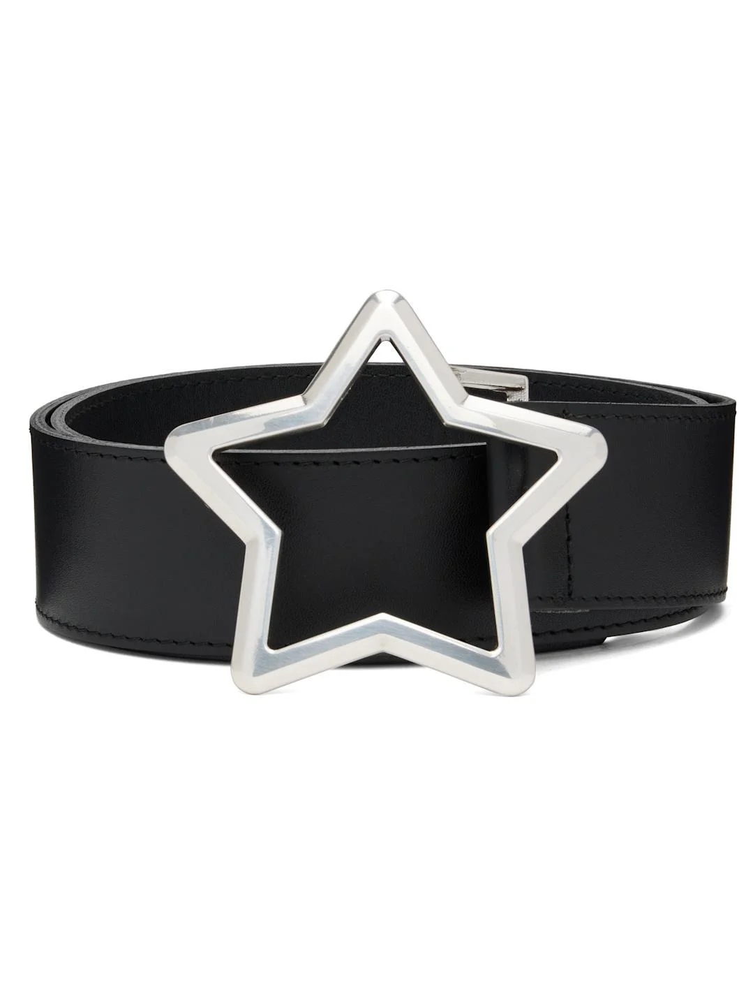 Buffed calfskin belt. · Silver-tone star-shaped buckle · Post-stud fastening · W1.5" Supplier color: Black leather Calfskin. Made in Portugal 252600M131006