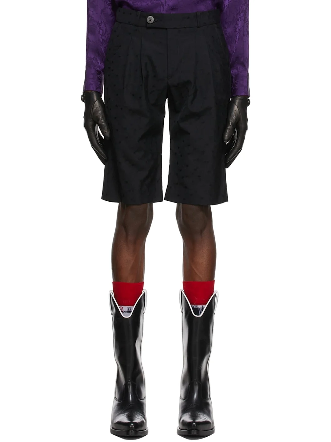 Plain-woven virgin wool shorts. Jacquard polka dot pattern throughout. · Belt loops at waistband · Pleats at front · Zip-fly · Four-pocket styling Supplier color: Polka dot jacquard 100% virgin wool. Made in Portugal 221600M193004