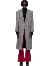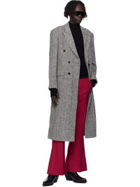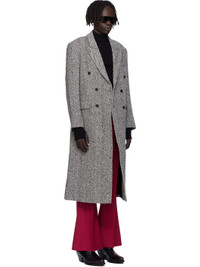 Virgin wool herringbone coat. · Peaked lapel · Double-breasted button closure · Welt pocket at chest · Flap pockets at waist · Buttoned surgeon's cuffs · Central vent at back hem · Welt pocket at interior · Full satin lining Supplier color: Herringbone Body: 100% virgin wool. Lining: 52% viscose, 48% cupro. Made in Portugal 252600M176001