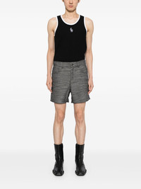 five-pocket tailored shorts Highlights - Black - Twill weave - Belt loops - Front button and zip fastening - Classic five pockets - Two rear patch pockets - Unlined Imported Composition Outer: Merino 54%, Cotton 16%, Viscose 15%, Nylon 15% Lining: Cotton 100% SIZE & FIT Model measurements Height 6 ft 2 in(1.87 m) Bust/Chest 34.25 in(87 cm) Hips 36.22 in(92 cm) Waist 29.52 in(75 cm) FittingInformation Designed for a straight-leg fit, offering an unrestricted and comfortable fit over the leg Made from a midweight non-stretch fabric This piece fits true to size – take your usual size