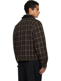 Virgin wool twill jacket. · Check pattern throughout · Buffed lambskin spread collar · Zip closure · Zip pocket at chest · Welt pockets at front · Buttoned barrel cuffs · Welt pocket at interior · Full satin lining Supplier color: Camel check Body: 100% virgin wool. Trim: 100% lambskin. Lining: 52% viscose, 48% cupro. Made in Portugal 252600M180011