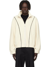 Stretch fleece track jacket. · Stand collar · Zip closure · Twill trim at front and back · Welt pockets at waist · Elasticized hem and cuffs · Welt pockets at interior · Fully lined Supplier color: Off-white Body: 64% polyester, 32% viscose, 4% elastane. Lining: 52% viscose, 48% cupro. Made in Portugal 252600M180009