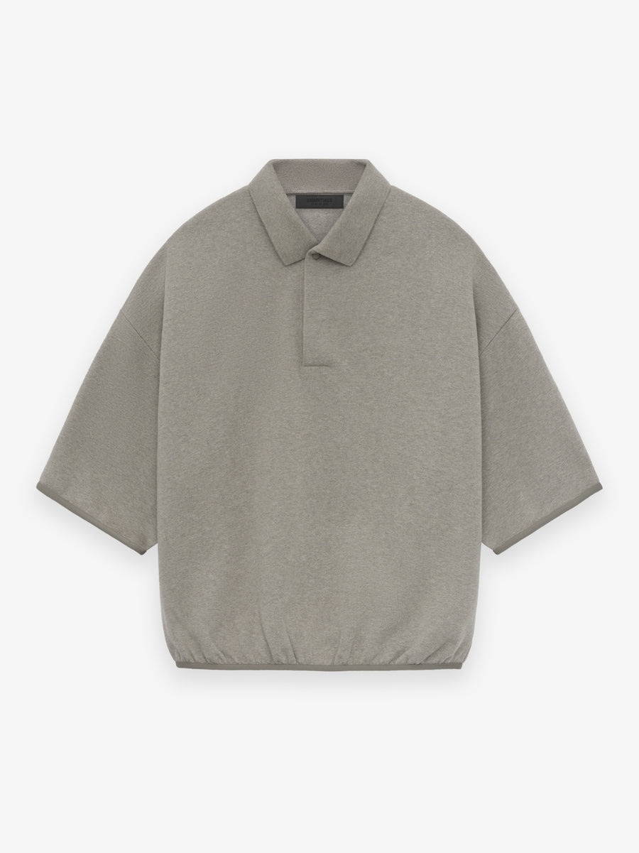 The Essentials 3/4 sleeve polo is made in core fleece and designed with volume to create a round, cropped silhouette. A rubberized soft-touch Essentials Fear of God logo is across the back. Details include a rib-knit polo collar, and waist hem. A Fear of God rubberized label is at the back collar. DETAILS - 80% cotton / 20% polyester heavyweight fleece - Essentials fit - relaxed body, sleeves - Rib-knit polo collar, and tapered waistband - Essentials Fear of God soft-touch rubberized logo - Fear of God rubberized label at back collar - Imported