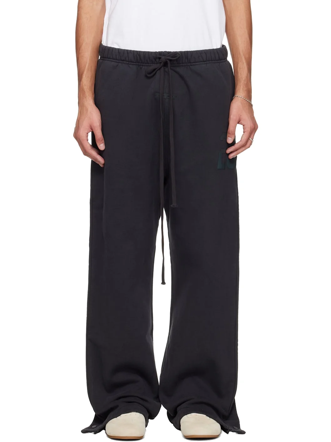 Heavyweight cotton fleece sweatpants. · Fading throughout · Wide-leg · Drawstring at elasticized waistband · Two-pocket styling · Rubber logo patch at front · Text bonded at leg · Zip vent and press-stud placket at outseams Part of the Fear of God ESSENTIALS Holiday collection. Supplier color: Vintage black 100% cotton. Made in Viet Nam 261161M190005