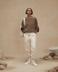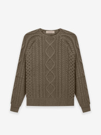 The cable knit sweater returns in a crewneck design with a relaxed fit highlighting the drape, depth, and texture. Rib-knit cuffs and waist hem frame the piece, and an Essentials rubberized label is stitched at the back collar. DETAILS - Relaxed fit - 57% cotton, 33% acrylic, 10% nylon knit - Essentials rubberized label - Rib-knit cuffs, waist hem - Imported - ESSENTIALS products are currently not available for purchase or shipment to Europe including Belgium, Luxembourg, and the Netherlands.