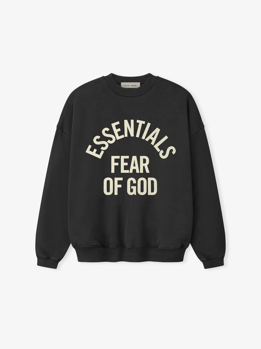 The Campus 90s Crewneck Sweatshirt is crafted from cotton 520GSM heavyweight fleece and finished with a pigment-dye treatment to achieve an authentic vintage tone. Designed in a cropped, relaxed silhouette, it features exaggerated proportions and dropped shoulders for an effortless drape. The front is defined by a puff-printed Essentials Fear of God campus graphic. Finishing details include a rib-knit crewneck, cuffs, and hem, along with an Essentials signature label at the back neckline.