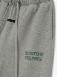 The NBA Celtics Sweatpant is crafted from 380gsm core fleece, offering both structure and body to its voluminous wide-leg silhouette. One leg features a bold ESSENTIALS print paired with the official NBA logo, while the Boston Celtics team type accents the other. Finishing details include an encased elastic waistband with elongated drawcords, side seam pockets, and a Fear of God Essentials rubberized label stitched at the center front. DETAILS - 80%COTTON / 20% POLYESTER FLEECE, 380GSM - LOUNGE FIT - WIDE LEG AND SEAT - NBA ESSENTIALS LOCKUP - BOSTON CELCTICS TEAM TYPE - ENCASED ELASTIC WAISTBAND - HEAVYWEIGHT DRAWSTRING - SIDE SEAM POCKETS - FEAR OF GOD ESSENTIALS LABEL - IMPORTED