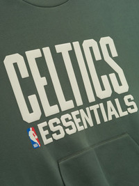 The Celtics Sport Crewneck is crafted from core fleece, offering an elevated balance of softness, structure, and lasting comfort. Cut in a relaxed sport fit, it drapes with more ease through the body and extended length compared to the Essentials classic silhouette. The front features a bold puff-print graphic "Celtics Essentials " alongside the authentic NBA logo, while the back showcases the official Boston Celtics graphic logo. Additional features include a kangaroo pocket, rib-knit at the collar, cuffs and waist hem. The signature rubberized Fear of God Essentials label accents the back. DETAILS - 80% COTTON / 20%POLYESTER FLEECE - ESSENTIALS SPORT FIT: RELAXED, CROPPED - CELTICS ESSENTIALS LOCKUP - NBA LOGO - BOSTON CELTICS S TEAM LOGO - FEAR OF GOD LABEL - KANGAROO POCKET - ELASTIC BINDING AT COLLAR, CUFF AND WAIST HEM - IMPORTED