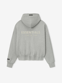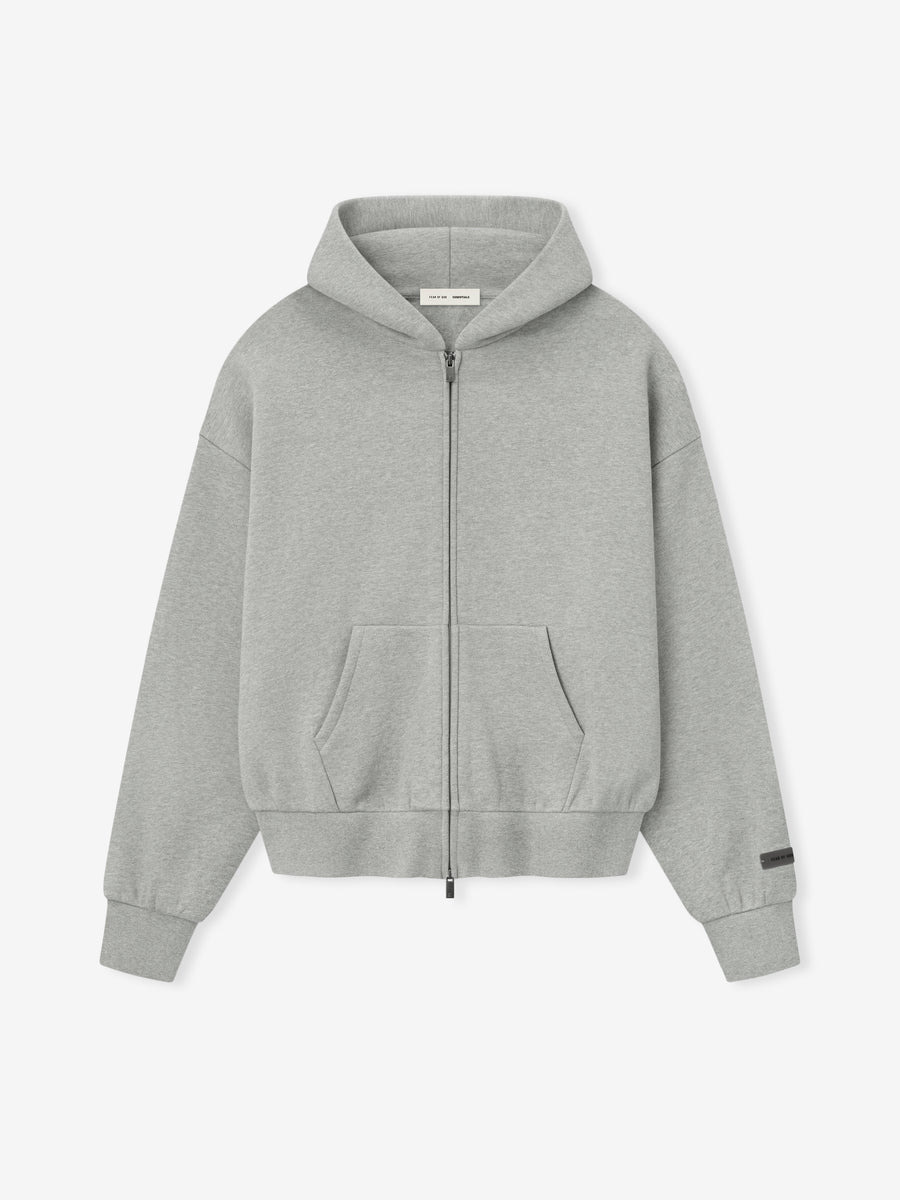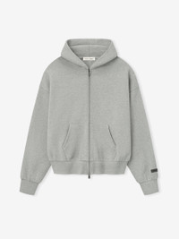 The Classic Zip-Up Hoodie is made from 380gsm core fleece to provide ideal comfort and structure. The zip-up hoodie style features a classic fit with signature Fear of God relaxed proportions. A new beveled metallic "Essentials Fear of God" logo is branded across the back. Details include a double-layer hoodie, rib-knit cuffs, waist-hem, and a kangaroo pocket. A Fear of God Essentials rubberized label is stitched on the hood and sleeve. DETAILS - 80% cotton / 20% polyester fleece, 380-gram - MODEL IS 6’2” AND WEARS SIZE MEDIUM IN CONCRETE HEATHER - Classic fit - signature Fear of God relaxed proportions - "Essentials Fear of God" beveled metallic logo - Double-layer hoodie - Rib-knit cuffs, and waist hem - Kangaroo pocket - Front full-zip - "Fear of God Essentials" translucent rubberized label - Imported