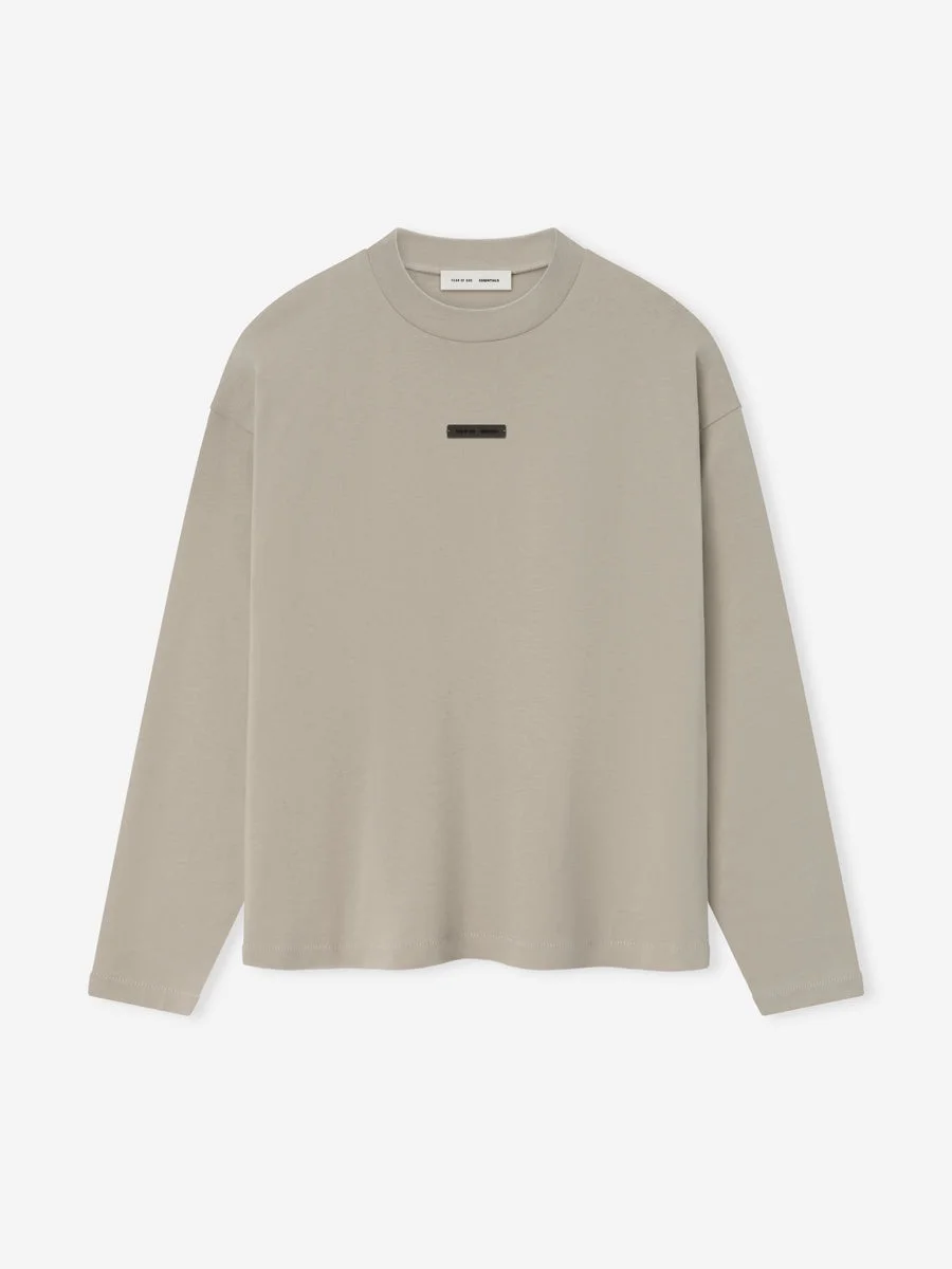 The Classic Long Sleeve Tee is made from medium-weight 100% cotton jersey. The rib-knit crewneck tee features a classic fit with signature Fear of God relaxed proportions for everyday wear. Branding includes a "Fear of God Essentials" rubberized label at the center front and a new "Essentials Fear of God" beveled metallic logo across the back. DETAILS - " - 100% cotton, 230-gram - Model is 6'3" and wears size Medium in Heather Stone - Classic fit -signature relaxed fit - Rib-knit crewneck - "Fear of God Essentials" translucent rubberized label - "Essentials Fear of God" beveled metallic logo - Imported