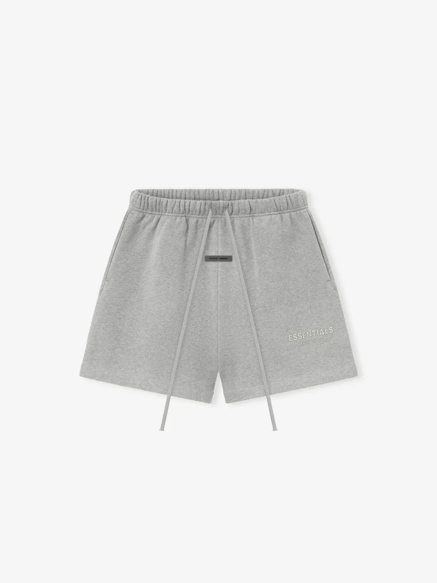 The Classic Sweatshort is crafted from 380gsm core fleece, offering exceptional comfort and structure. The relaxed mid-length leg design channels a 90s soccer style. A new "Essentials Fear of God" beveled metallic logo is branded on the leg. Key features include side pockets and an encased elastic waistband with drawstrings. Additionally, there is a Fear of God Essentials rubberized label positioned at the center front. DETAILS - 80% cotton / 20% polyester fleece, 380-gram - MODEL IS 6’2” AND WEARS SIZE MEDIUM IN CONCRETE HEATHER - Soccer fit - relaxed, mid length - "Essentials Fear of God" beveled metallic logo - Encased elastic waistband - Heavyweight drawstring with rubberized tip - Side seam pockets - "Fear of God Essentials" translucent rubberized bar - Imported