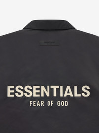 The coach's jacket is updated with iridescent nylon fabric and a flocked logo treatment inspired by vintage athletic wear. The velvety Essentials Fear of God logo is on the chest, and an Essentials rubberized label is placed on the back. An Essentials Fear of God logo is on the chest, and an Essentials rubberized label is placed on the back. The piece features a snap button closure, side seam welt pockets, elastic cuffs, and a point collar. DETAILS - 100% Iridescent Nylon - Essentials Fear of God flocked logo on back - Essentials rubberized label on back - Point collar - Snap button closure - Imported - ESSENTIALS products are currently not available for purchase or shipment to Europe including Belgium, Luxembourg, and the Netherlands.