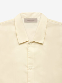 The coaches jacket is made in Taslan nylon with a full polyester lining to deliver sportswear performance with excellent durability, wind, and water resistance. A 1977 graphic in velvet flocking channels vintage athleticwear. The piece features a point collar, snap button placket, side seam pockets, elastic cuffs, and a drawstring at the bottom hem. An Essentials rubberized label is stitched at the back collar.