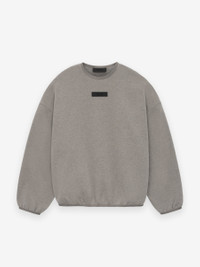 The Essentials crewneck is made in core fleece and designed with volume to create a round, cropped silhouette. New minimalist branding is seen in the rubberized Essentials Fear of God black bar on the center front. Details include side seam pockets, a new crew neckline with stretch binding at the collar, rib-knit cuffs, and a waist hem. A Fear of God rubberized label is at the back collar. DETAILS - 80% cotton / 20% polyester heavyweight fleece - Essentials fit - relaxed body, sleeves - Rib-knit cuff and tapered waistband - Crew neckline with stretch binding - Side seam pockets - Essentials Fear of God black bar on the center front - Fear of God rubberized label at back collar - Imported