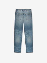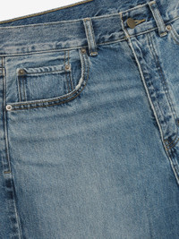 The Denim 5-Pocket Jean is made in 100% cotton denim with a vintage wash. The classic, straight leg style is detailed with antique brass hardware, and a "Fear of God Essentials" rubberized label is stitched at the back pocket. DETAILS - 100% cotton denim - Classic straight leg - 5-pocket style - Antique brass hardware - "Fear of God Essentials" translucent rubberized label - Imported