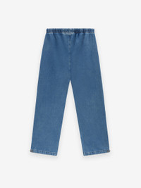 The Essentials lounge pant is made in cotton denim and designed in a wide-leg fit for pronounced drape. Additional details include an encased elastic waistband with elongated drawstrings, adjustable drawstrings at the ankle, and side seam pockets. A Fear of God rubberized label is at the center front. DETAILS - 100% Cotton Medium-Wash Denim - Essentials wide-leg fit - Encased elastic waistband - Heavyweight drawstring with rubberized tip - Fear of God rubberized label at the center front - Side seam pockets - Imported