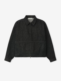 The Full Zip Work Jacket is crafted from 100% cotton denim treated with a soft rinse to achieve a lived-in vintage black finish. Finishing touches include a polo collar, side pockets, and full zip front. A Fear of God Essentials rubberized label stitched at the back. DETAILS - 100% COTTON DENIM - RELAXED FIT - RELAXED, CROPPED - 3/4 SLEEVES - FULL ZIP FRONT - POLO COLLAR - FEAR OF GOD ESSENTIALS LABEL - IMPORTED