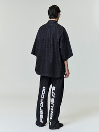 The Work Pant is cut from 100% cotton denim, treated with a soft rinse to achieve a lived-in vintage black finish. Designed in a relaxed, straight-leg silhouette, the pant balances workwear utility with modern ease. Bold contrasting branding defines the back, with “Fear of God” printed on one leg and “Essentials” on the other. Functional details include antique metal hardware, front slant pockets, welt back pockets, and a Fear of God label stitched on the back pocket. DETAILS - 100% COTTON DENIM - Model is 6'1'' and wears size Medium - VINTAGE WASH - RELAXED STRAIGHT LEG - FEAR OF GOD AND ESSENTIALS PRINT - SIDE POCKETS - BACK WELT POCKETS - ANTIQUE BRASS HARDWARE - FEAR OF GOD ESSENTIALS LABEL - IMPORTED