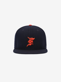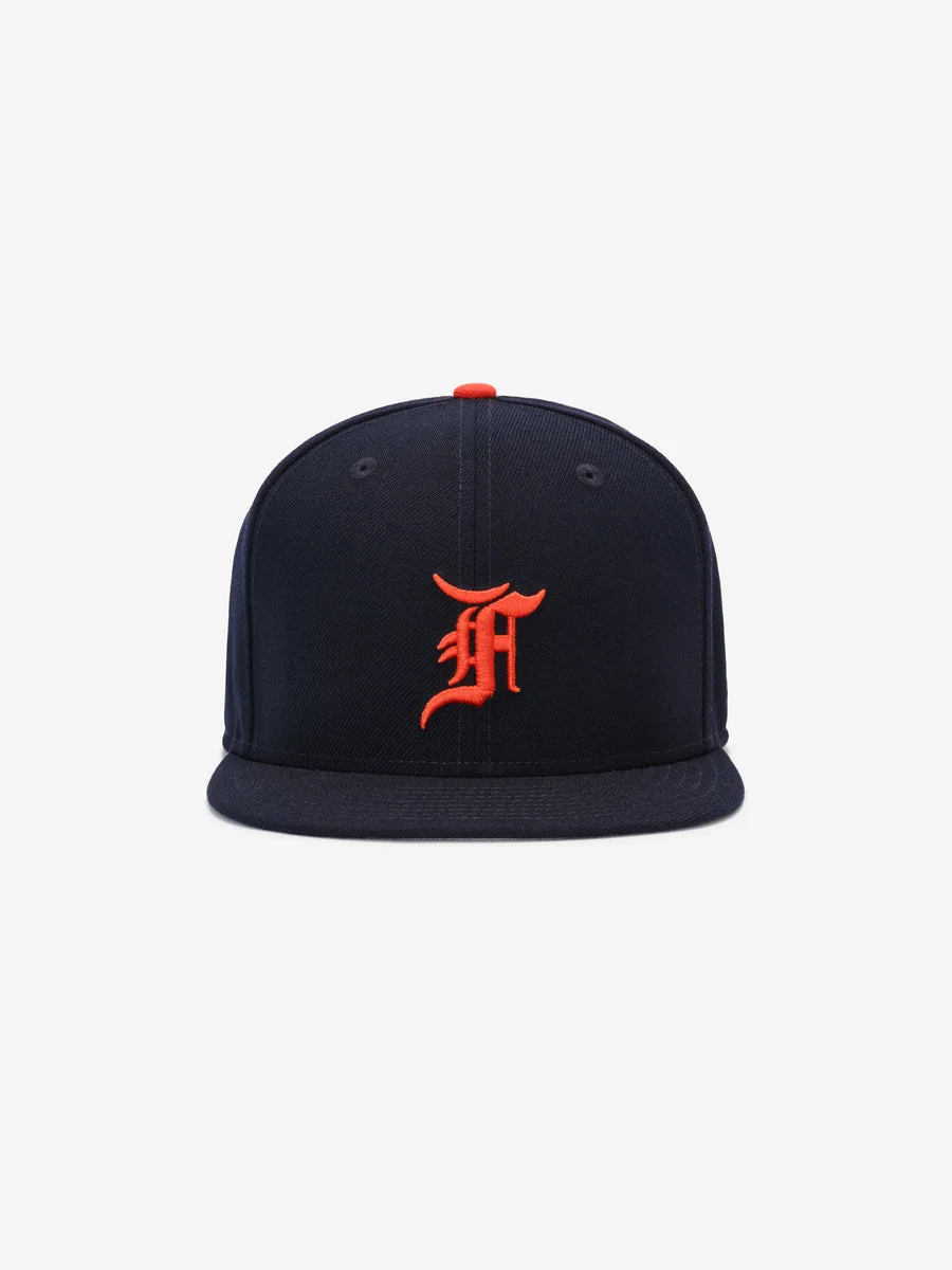 The Fear of God Essentials Detroit Tigers 59Fifty Fitted Cap features an embroidered Fear of God script logo at the front with a Fear of God label at the back. Additional details include a Tigers team color fabrication with a grey undervisor. DETAILS - FULLY FITTED 59FIFTY CAP - CONTRASTING GREY UNDERVISOR - EMBROIDERED F SCRIPT LOGO ON FRONT - EMBROIDERED NEW ERA SCRIPT LOGO ON SIDE - FEAR OF GOD LABEL AT BACK - 100% WOOL - IMPORTED