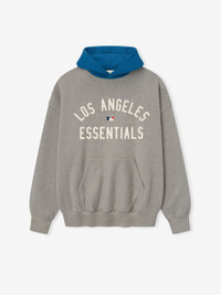 The Dodgers Sport Hoodie is crafted from core fleece, offering an elevated balance of softness, structure, and lasting comfort. Cut in a relaxed sport fit, it drapes with more ease through the body and extended length compared to the Essentials classic silhouette. The front features a bold puffer-print graphic reading "Los Angeles Essentials" alongside the official MLB insignia, while the back is finished with the authentic "LA" Dodgers logo. Additional features include a contrasting double-layered hood, kangaroo pocket, rib-knit at the cuffs and waist hem. The signature rubberized Fear of God Essentials label accents the hood. DETAILS - 80% COTTON / 20%POLYESTER FLEECE - ESSENTIALS SPORT FIT: RELAXED, CROPPED - LOS ANGELES ESSENTIALS + MLB LOGO - LA LOGO - FEAR OF GOD LABEL - KANGAROO POCKET - ELASTIC BINDING AT CUFF AND WAIST HEM - IMPORTED