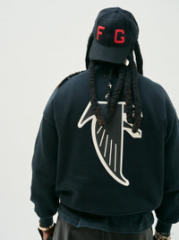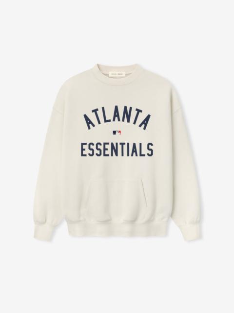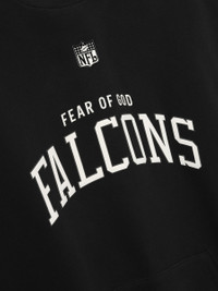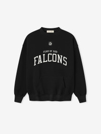The Fear of God Essentials Falcons Crewneck is made from core fleece and features a modern fit for a relaxed, cropped silhouette. The front showcases a puffer print with the "Fear of God Falcons" lockup, along with the iconic NFL logo. On the back, you'll find the primary Atlanta Falcons logo. Additional details include side seam pockets, and rib-knit bindings at the collar, cuffs, waist hem, and a rubberized Fear of God Essentials label is attached at the back collar. DETAILS - 80% COTTON / 20% POLYESTER HEAVYWEIGHT FLEECE - ESSENTIALS MODERN FIT - CROPPED, VOLUMINOUS BODY, SLEEVES - PUFFER PRINT ATLANTA ESSENTIALS GRAPHIC AND NFL LOGO - FALCON LOGO - ESSENTIALS FEAR OF GOD RUBBERIZED LABEL - ELASTIC BINDING AT COLLAR, CUFF AND TAPERED WAISTBAND - IMPORTED