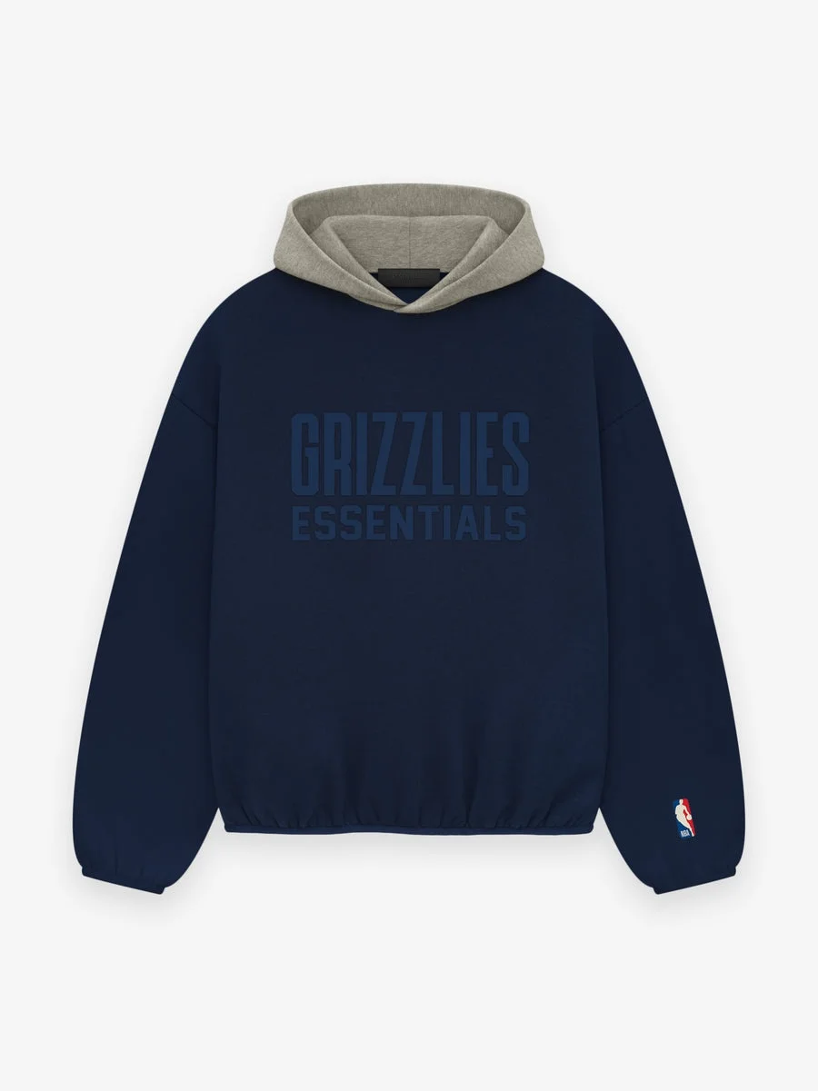 The Essentials Grizzlies hoodie is crafted from core fleece and features a voluminous, cropped silhouette. The front displays a rubberized soft-touch Grizzlies Essentials lockup along with the iconic NBA logo on the sleeve. Additional details include a contrasting double layered hood, side seam pockets, and elastic bindings at the cuffs and waist hem. A rubberized Fear of God label is attached to the hood. DETAILS - 80% cotton / 20% polyester heavyweight fleece - Essentials modern fit - cropped, voluminous body, sleeves - Rubberized soft-touch Grizzlies ESSENTIALS graphic and NBA logo - Fear of God rubberized label on the hood - Side seam pockets - Contrasting double layered hood - Elastic Binding at cuff and tapered waistband - Imported