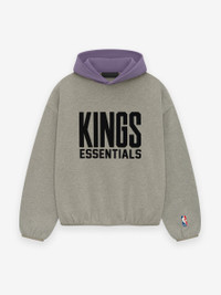 The Kings Essentials hoodie is crafted from core fleece and features a voluminous, cropped silhouette. The front displays a rubberized soft-touch Kings Essentials lockup along with the iconic NBA logo on the sleeve. Additional details include a contrasting double layered hood, side seam pockets, and elastic bindings at the cuffs and waist hem. A rubberized Fear of God label is attached to the hood. DETAILS - 80% cotton / 20% polyester heavyweight fleece - Essentials modern fit - cropped, voluminous body, sleeves - Rubberized soft-touch Kings ESSENTIALS graphic and NBA logo - Fear of God rubberized label on the hood - Side seam pockets - Contrasting double layered hood - Elastic Binding at cuff and tapered waistband - Imported