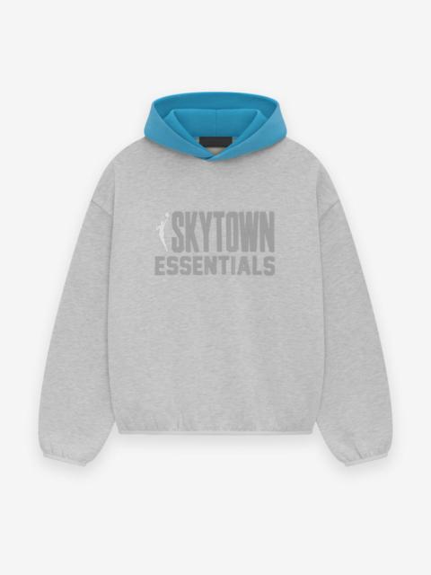 The Essentials Lakers hoodie is made from core fleece and showcases a trendy cropped silhouette. The front features a rubberized soft-touch "LAKERS ESSENTIALS" logo, along with the iconic NBA logo on the sleeve. Additional details include a contrasting double-layered hood, side seam pockets, and elastic bindings at the cuffs and hem. A rubberized "Essentials Fear of God" label is attached to the hood. DETAILS - 80% cotton / 20% polyester heavyweight fleece - Essentials modern fit - cropped, voluminous body, sleeves - Rubberized soft-touch LAKERS ESSENTIALS graphic and NBA logo - Fear of God rubberized label on the hood - Side seam pockets - Contrasting double layered hood - Elastic Binding at cuff and tapered waistband - Imported
