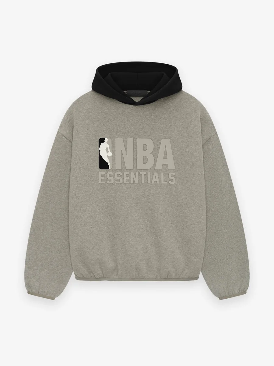The Essentials NBA hoodie is crafted from core fleece and features a voluminous, cropped silhouette. The front displays a rubberized soft-touch NBA Essentials lockup along with the iconic NBA logo. Additional details include a double layered hood, side seam pockets, and elastic bindings at the cuffs and waist hem. A rubberized Fear of God label is attached to the hood. DETAILS - 80% cotton / 20% polyester heavyweight fleece - Essentials modern fit - cropped ,voluminous body, sleeves - Rubberized soft-touch NBA ESSENTIALS graphic and NBA logo - Fear of God rubberized label on the hood - Side seam pockets - Double layered hood - Elastic Binding at cuff and tapered waistband - Imported