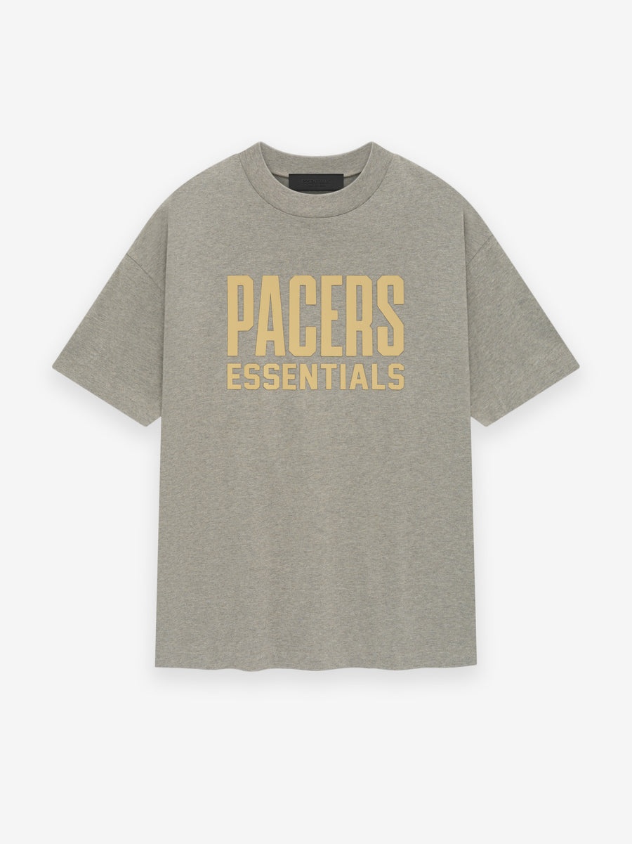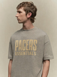 The Pacers Essentials short sleeve tee is crafted from core cotton jersey. It features a relaxed fit in the body with dropped shoulders and a rib-knit crewneck. On the front, there is a rubberized soft-touch Pacers Essentials lockup along with the iconic NBA logo on the back. Additionally, a rubberized Fear of God label is located at the back collar. DETAILS - Details: - 100% cotton jersey, 220gsm - Essentials classic fit - relaxed body and sleeves - Rubberized soft-touch PACERS ESSENTIALS graphic and NBA logo - Classic rib-knit collar - Fear of God rubberized label at back collar - Imported