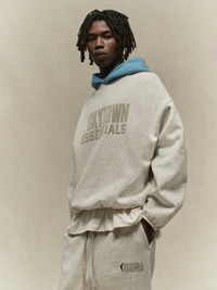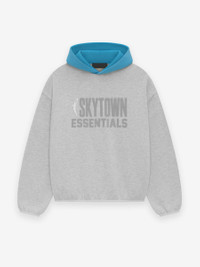 The Essentials Sky hoodie is made from core fleece and features a loose, cropped silhouette. The front showcases a rubberized, soft-touch WNBA logo alongside the "SKYTOWN ESSENTIALS" lockup. Additional details include a contrasting double-layered hood, side seam pockets, and elastic bindings at the cuffs and waist hem. A rubberized "Essentials Fear of God" label is attached to the hood, and there is a WNBA logo at the back of the collar, underneath the hood. DETAILS - 80% cotton / 20% polyester heavyweight fleece - Essentials modern fit - cropped, voluminous body, sleeves - Rubberized soft-touch SKYTOWN ESSENTIALS graphic and WNBA logo - Essentials Fear of God rubberized label on the hood - Side seam pockets - Contrasting double layered hood - Elastic Binding at cuff and tapered waistband - Imported