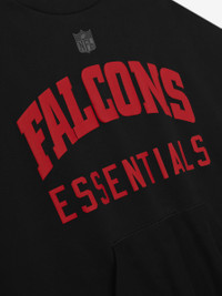 The Falcons Sport Crewneck is crafted from heavy 480gsm core fleece and cut in a relaxed sport fit. The front features a bold "Falcons Essentials" puff-print graphic, while the back displays the official Atlanta Falcons logo. Additional details include a kangaroo pocket and rib-knit collar, cuffs, and waist hem. The look is finished with the signature rubberized Fear of God Essentials label. DETAILS - 80% COTTON / 20%POLYESTER FLEECE 480GSM - ESSENTIALS SPORT FIT: RELAXED, - FALCONS ESSENTIALS GRAPHIC - ATLANTA FALCONS LOGO - FEAR OF GOD LABEL - KANGAROO POCKET - RIB KNIT COLLAR, CUFF AND WAIST HEM - IMPORTED